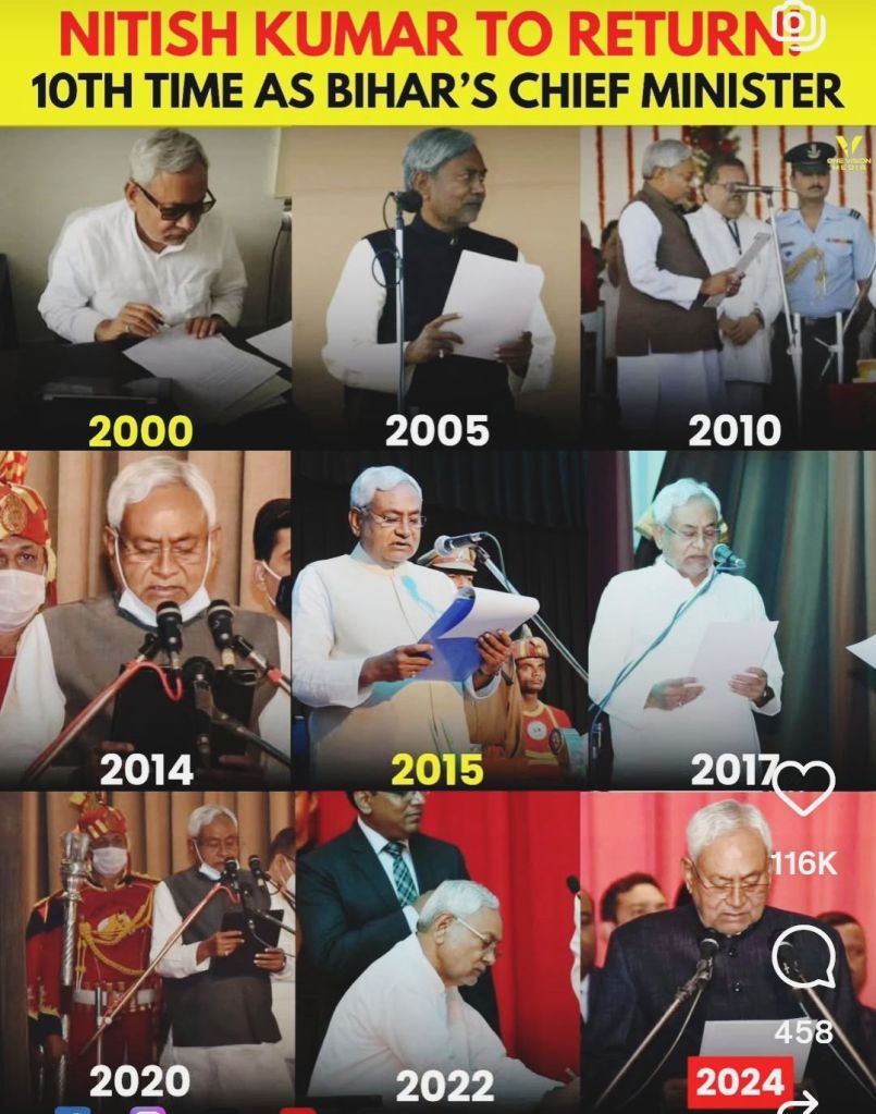 This calibrated unpredictability forms the central grammar of Kumar’s politics. Sworn in as Chief Minister ten times, he perfected the art of navigating volatile mandates and fragile coalitions. His political journey began in the socialist ferment inspired by Jayaprakash Narayan, eventually intersecting—and competing—with the formidable influence of Lalu Prasad Yadav. Over decades marked by ideological realignments and shifting alliances, Kumar displayed a rare blend of ideological inheritance and pragmatic adaptation. For him, survival was never merely defensive; it became a form of political craftsmanship in which timing, restraint, and calculation were elevated to strategy.