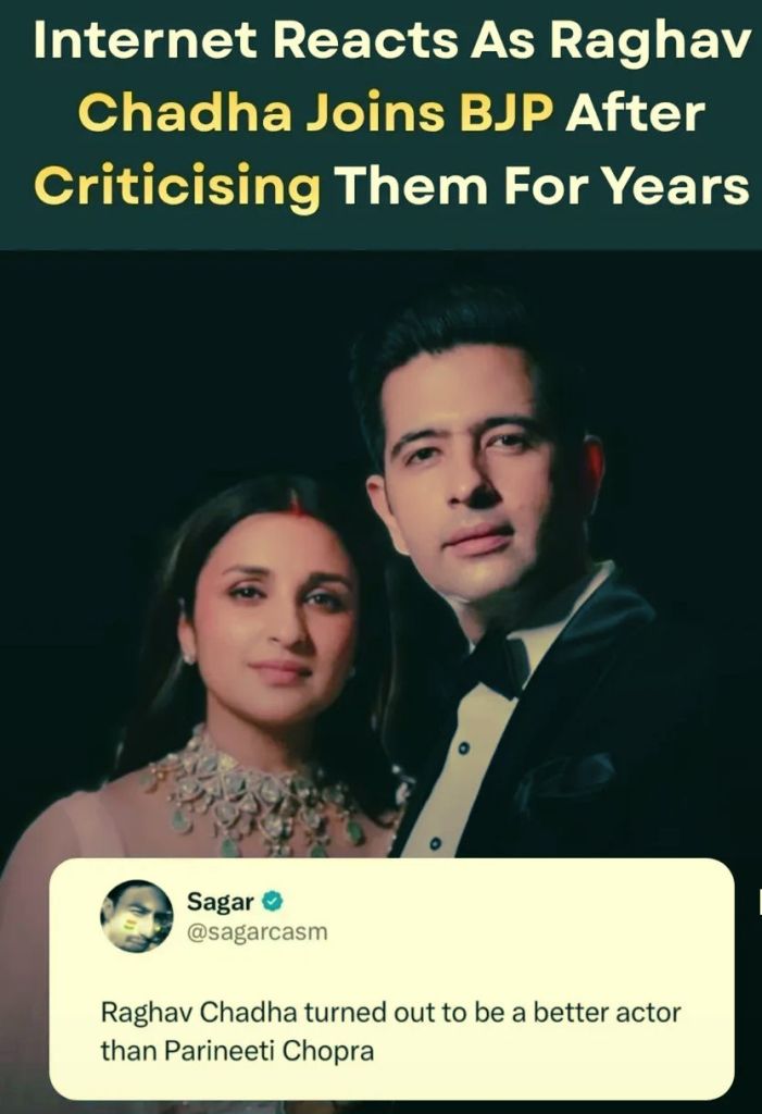 Chadha’s justification for leaving AAP was carefully wrapped in moral language—claims that the party had deviated from its founding principles. But this argument collapses under its own hypocrisy. If AAP had become morally impure, Chadha was not a distant observer; he was part of its top structure for nearly 15 years. If the party’s values were eroding, why did his conscience awaken only after his influence was reduced? The politically uncomfortable answer is obvious: morality was not the reason for exit; morality was the packaging for exit. In Indian politics, politicians rarely admit, “I am shifting because my future is safer there.” Instead, they declare, “I am shifting because my soul is wounded.” This is not ideology. This is brand protection. Chadha did not merely defect—he attempted to defect without losing the halo.
